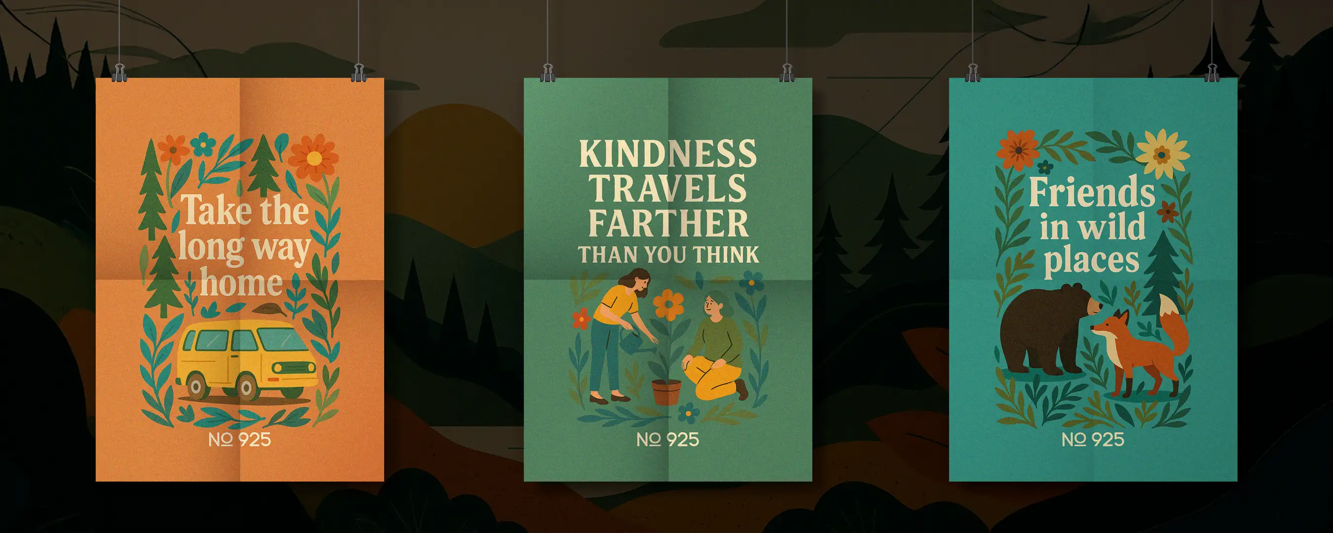 Uplifting nature inspired posters, great for the camper van or the office. (Wherever that may be today.)